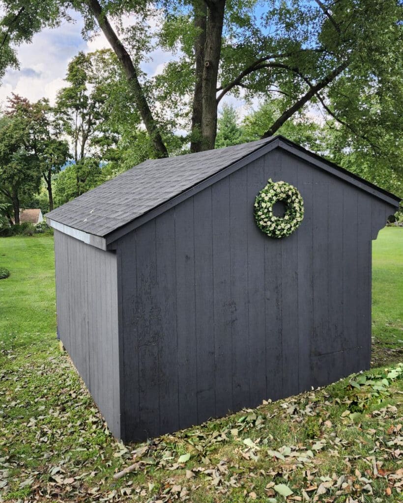The roof on this 10×12 Quaker shed had a significant hole, leaving its contents vulnerable to the elements. We addressed this issue by installing new architectural shingles, designed to last 30-years. The new roof not only restored the shed’s functionality but also enhanced its appearance, giving it a fresh look.